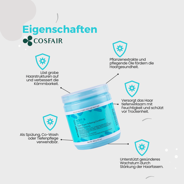 This triple threat conditioning treatment helps soften unmanageable hair and gently loosens tight, coarse textures. Aunt Jackie's Soft & Sassy Super Duper Softening Conditioner also moisturizes and helps strengthen and improve hair health with natural conditioners.