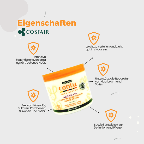 Cantu Conditioning Repair Cream – repariert Haarbruch, spendet intensive Feuchtigkeit & stärkt lockiges und trockenes Haar mit reiner Sheabutter.