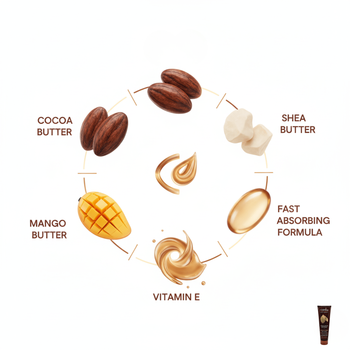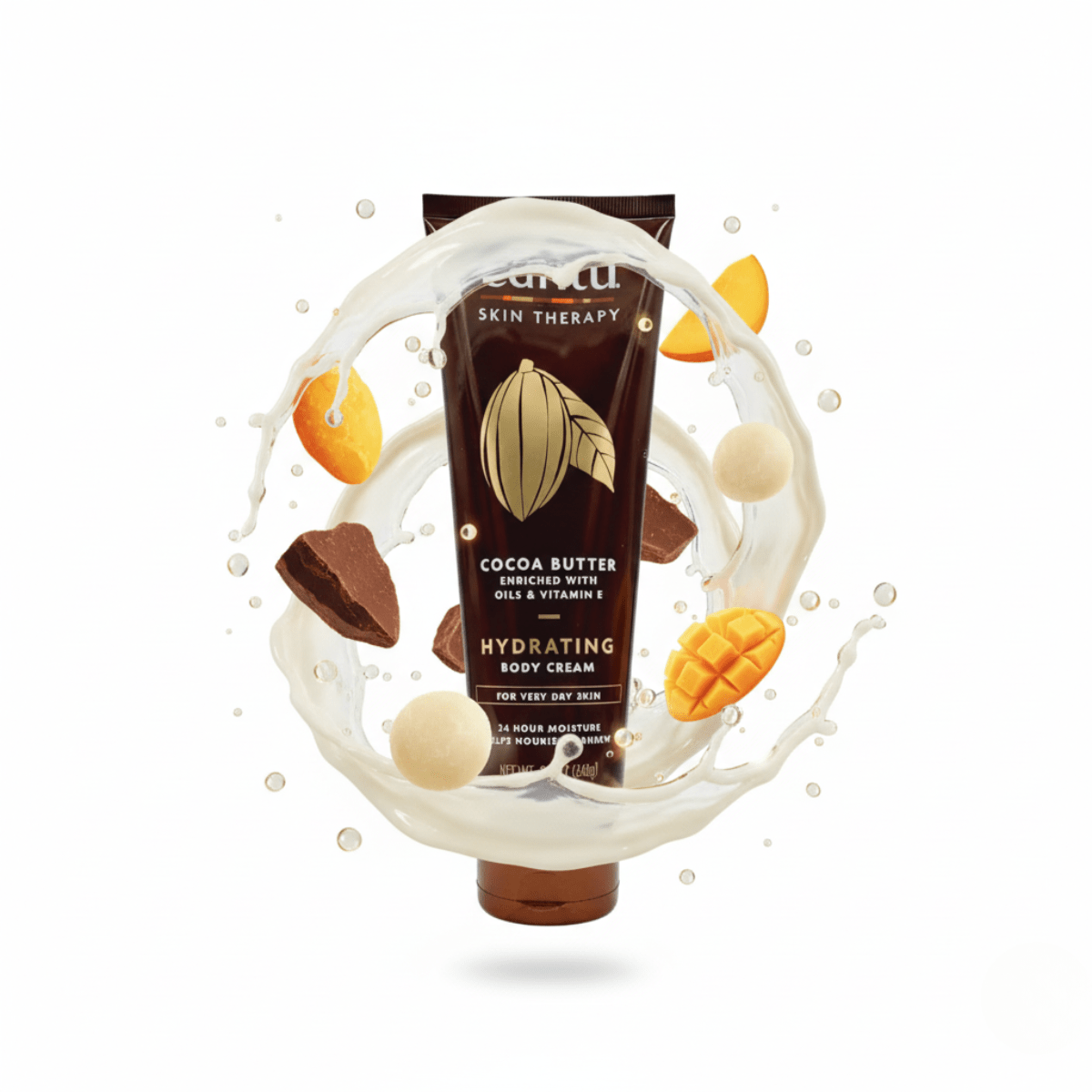 Cantu Cocoa Butter Body Cream – reichhaltige Pflege für sehr trockene Haut. Kakaobutter, Shea & Mango für 24h Feuchtigkeit und geschmeidige Haut.