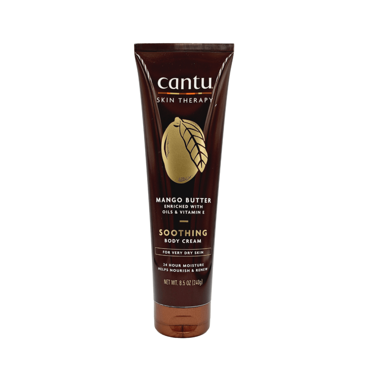 Cantu Skin Therapy Mango Butter Soothing Body Cream contains natural cocoa butter and a unique blend of coconut oil, sunflower oil and vitamin E to deeply moisturize rough, dry skin. This body cream nourishes the skin and leaves it feeling supple and soft. Enjoy subtle notes of coconut and vanilla that envelop your skin.