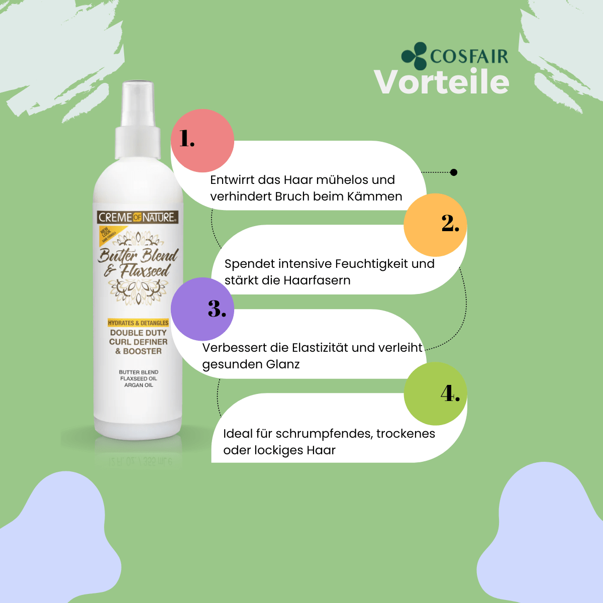 - For styling, combine with other Creme of Nature Butter Blend & Linseed styling products .