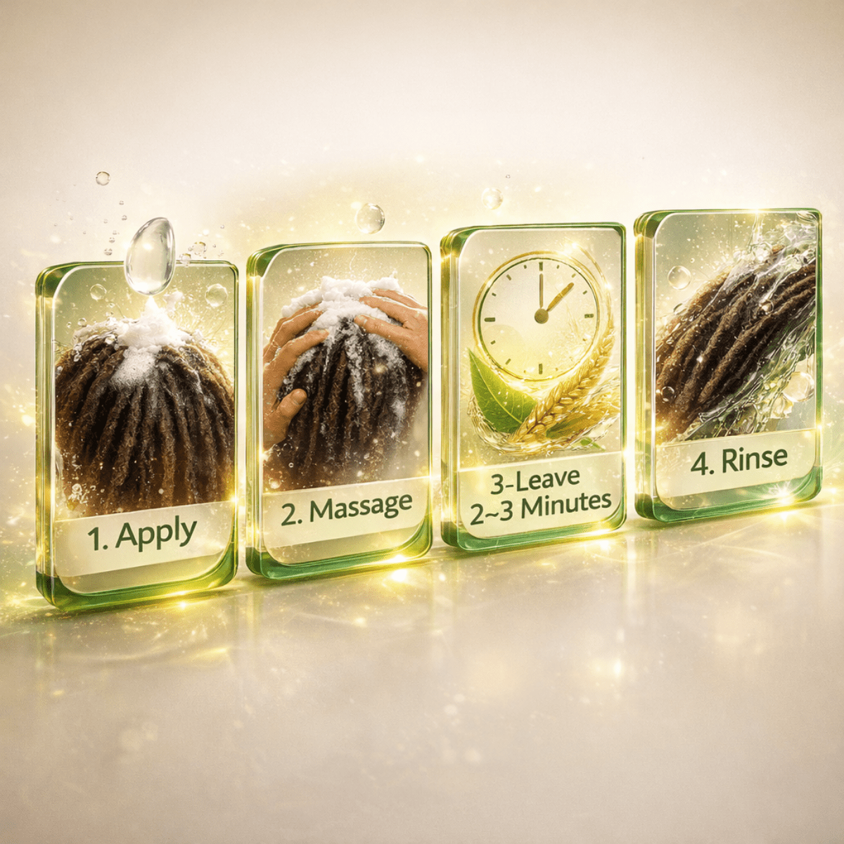 3️⃣ 2–3 Minuten einwirken lassen, damit die Wirkstoffe ihre volle Pflege entfalten.