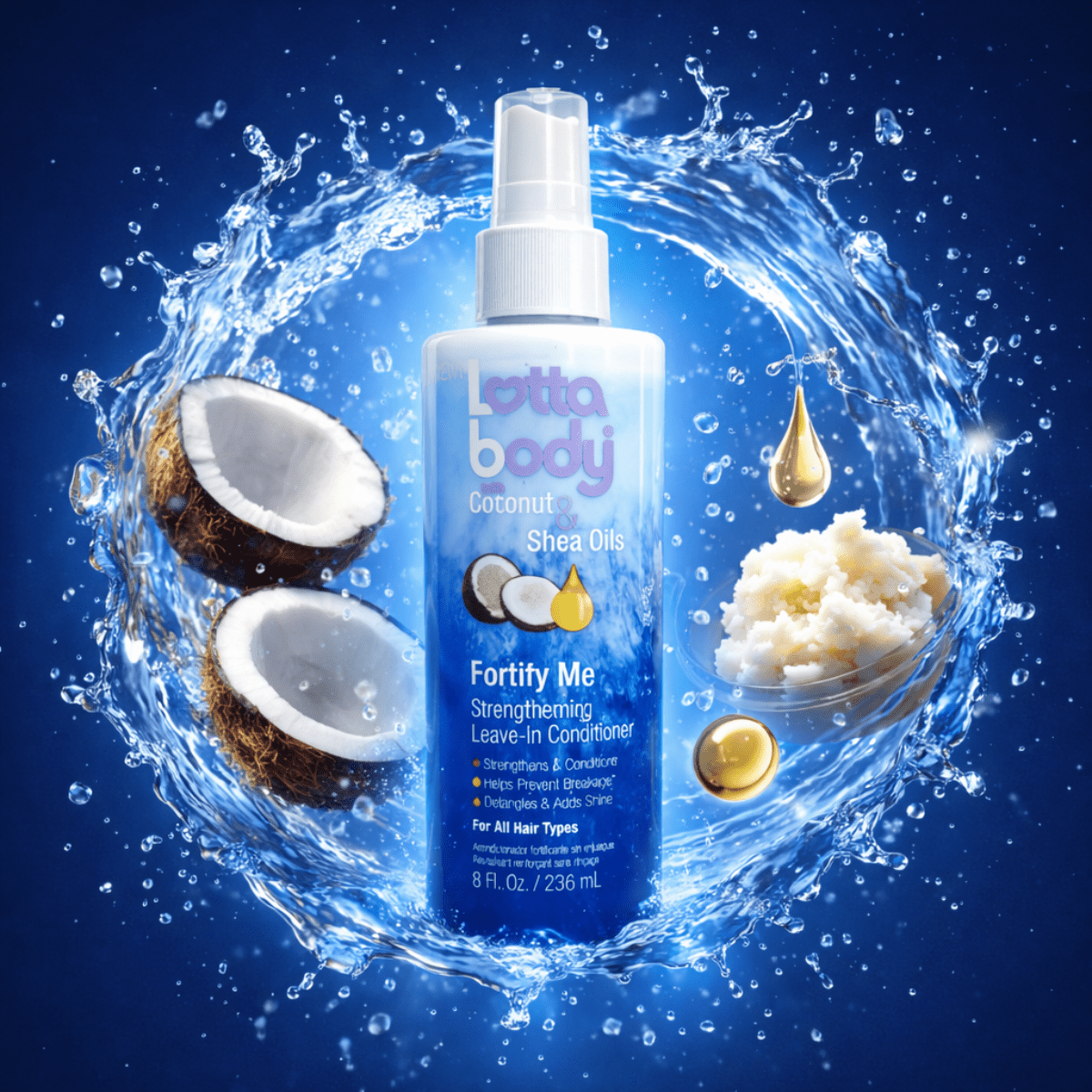 Enriched with coconut shea oils, Lotta Body Fortify Me Strengthening Leave In Conditioner penetrates deep into the hair, moisturizing and leaving hair soft, nourished and with a radiant shine. This Shaketoactivate formula strengthens the hair, prevents breakage and detangles at the same time. When used together as a system ( Hydrate Me Moisturizing Shampoo , Hydrate Me Moisturizing Conditioner and Lotta Body Fortify Me Strengthening Leave In Conditioner) you will experience comprehensive care for healthy, shiny hair.