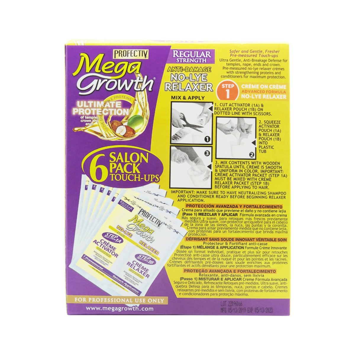 This Protectiv Mega Growth Anti Damage No-Lye Relaxer Regular contains an ultimate protective blend of natural oils and nourishing proteins at every step to prevent breakage, split ends and dryness. It improves elasticity and mobility, increasing the strength of relaxed hair by up to 100%.
