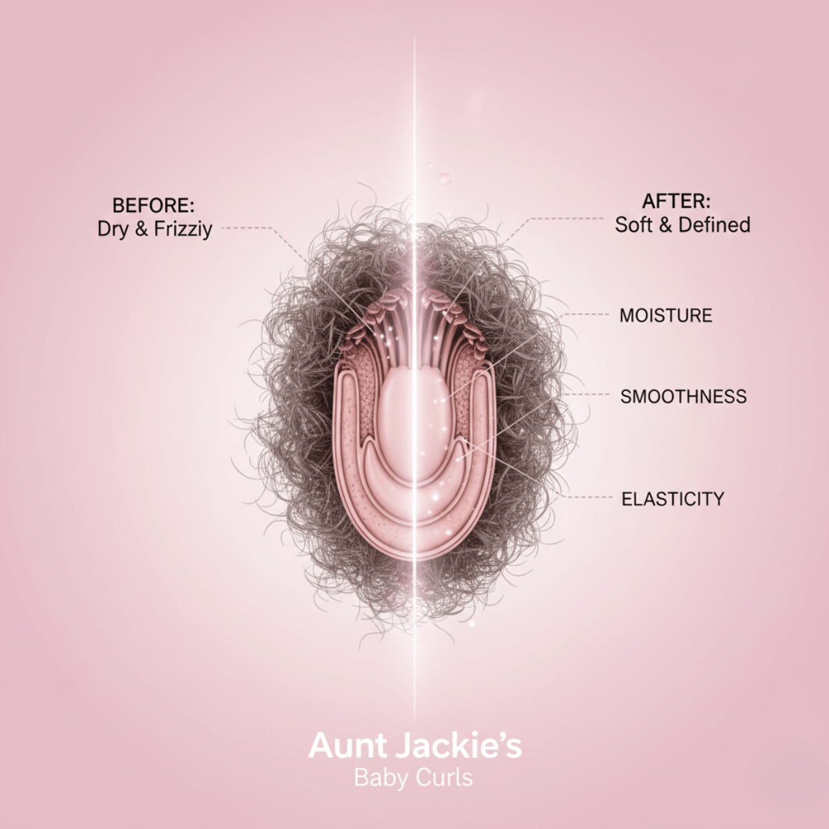 Aunt Jackie's Baby Curls Curling & Twisting Custard is an anti-frizz formula that keeps curls, waves and twists well defined and bouncy. Curls are lengthened and given long-lasting definition. The formula ensures that hair is super soft without becoming sticky or crunchy.