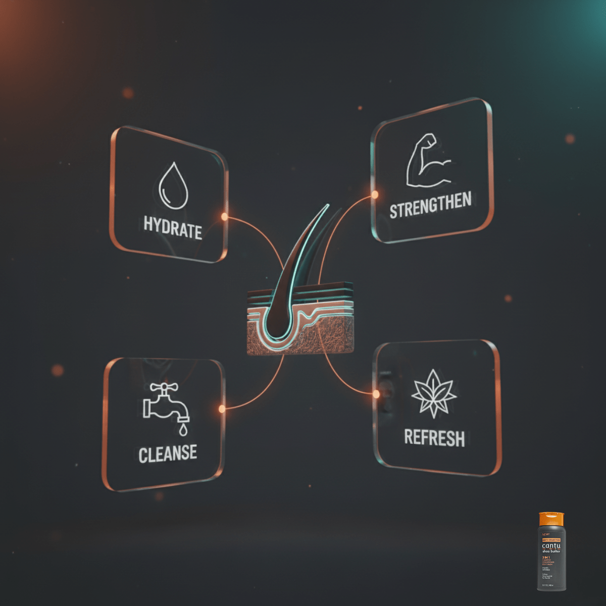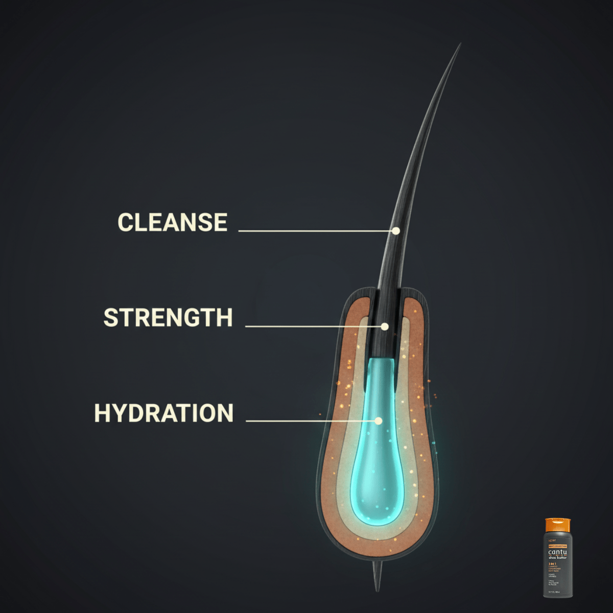 Das Cantu Shea Butter Men’s Collection 3-in-1 Shampoo, Conditioner & Body Wash ist die ultimative All-in-One-Lösung für Männer, die Wert auf Effizienz, Pflege und natürliche Inhaltsstoffe legen. Die kraftvolle Kombination aus reiner Shea-Butter, Hanfsamenöl und Koffein reinigt gründlich, spendet intensive Feuchtigkeit und stärkt Haar und Haut – alles in nur einem Schritt.