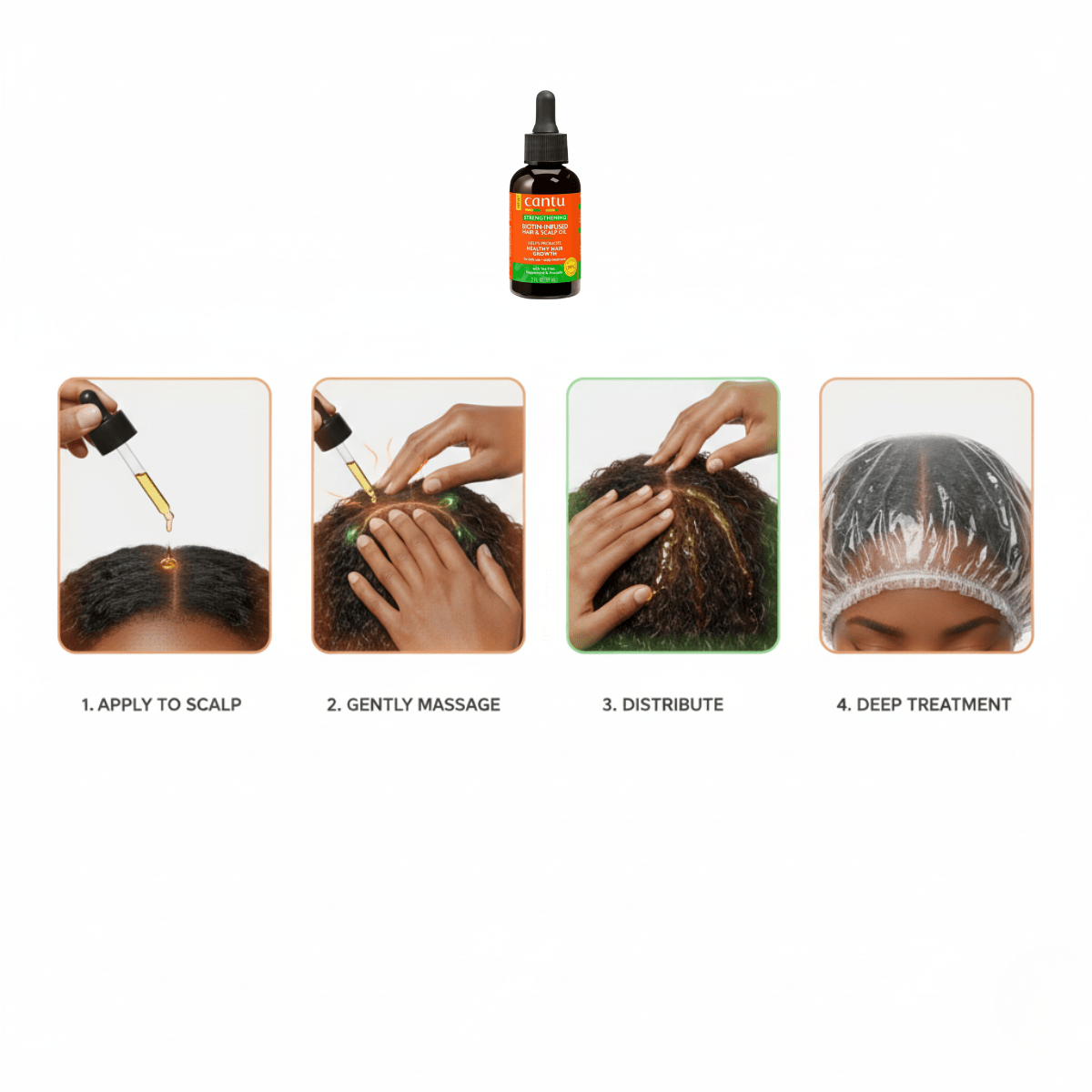1️⃣ Eine kleine Menge direkt auf die Kopfhaut auftragen.