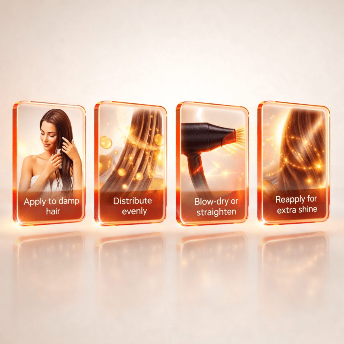4️⃣ Für extra Glanz und Geschmeidigkeit nach dem Styling erneut auftragen.