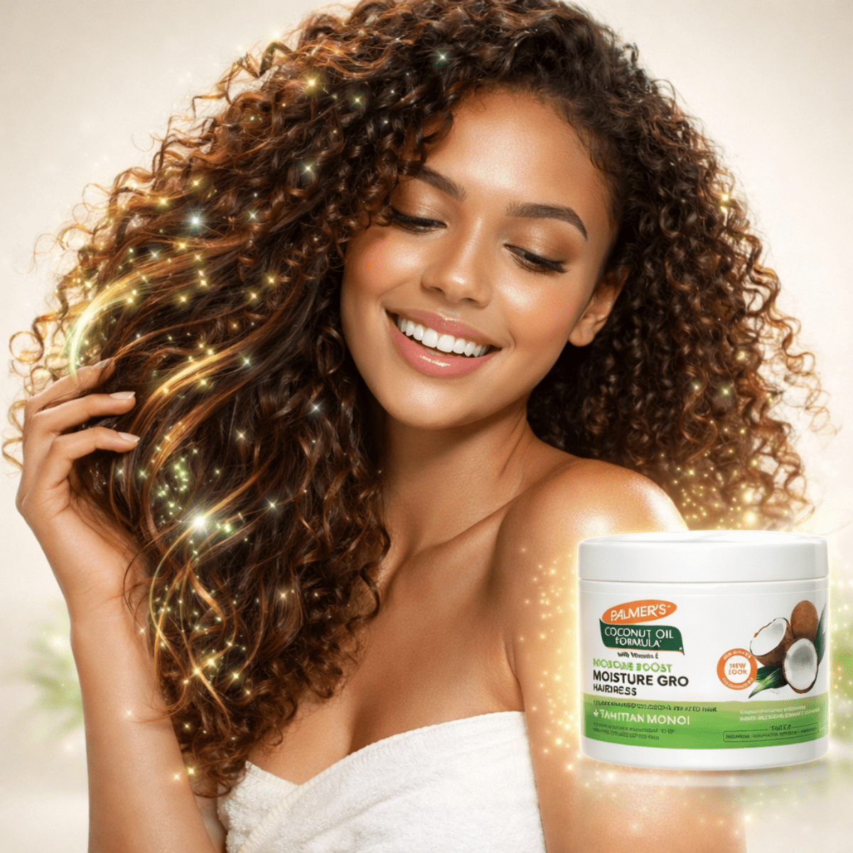 - Apply a pea-sized amount of Palmers Coconut Moisture Gro Hairdress to clean, dry hair and scalp.