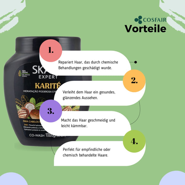 SKALA Manteiga de Karité 2 in 1 Co-Wash: Reichhaltige Shea-Butter-Pflege für trockenes, geschädigtes Haar. Spendet Feuchtigkeit, repariert & macht das Haar weich, glänzend und leicht kämmbar. Ideal für tägliche Pflege.