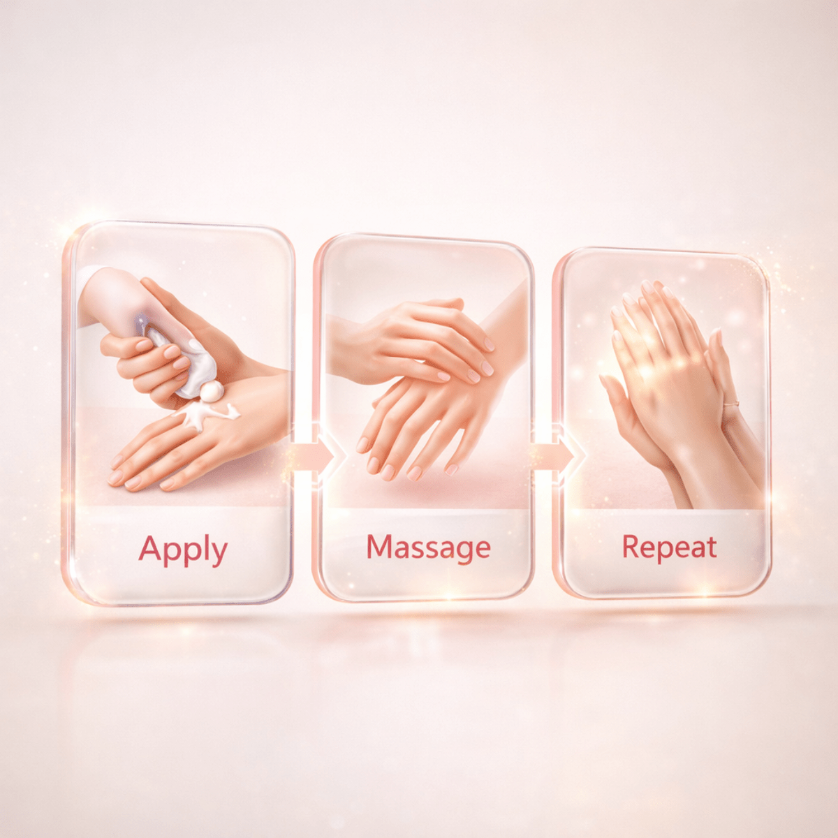 3️⃣ Mehrmals täglich wiederholen, besonders nach dem Händewaschen.