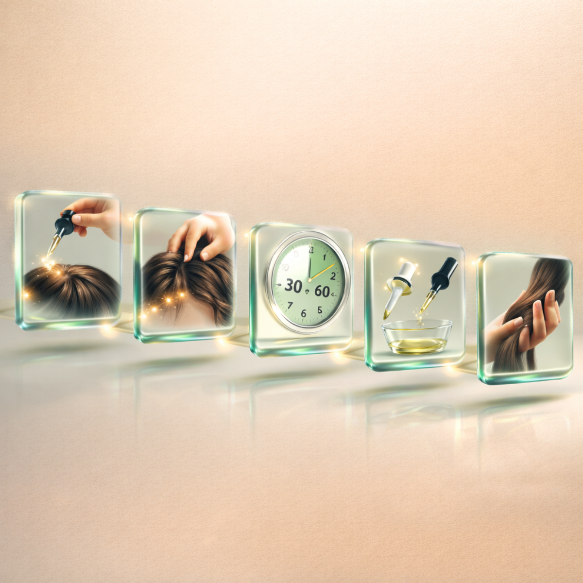 4️⃣ Für Haarlängen Einige Tropfen in die Längen geben für Glanz und Geschmeidigkeit.