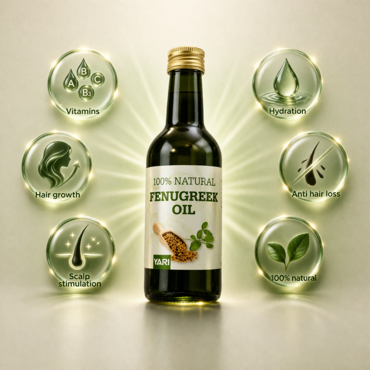 - Enriched with vitamins B1, B3, A and C as well as vegetable proteins, Yari Fenugreek Oil is known for its stimulating properties.