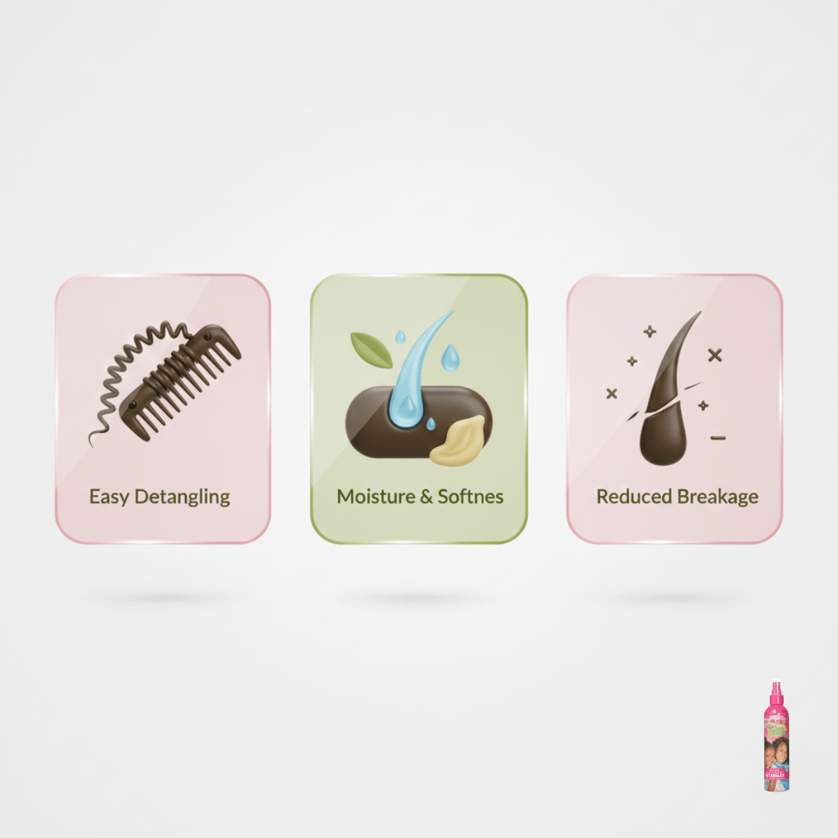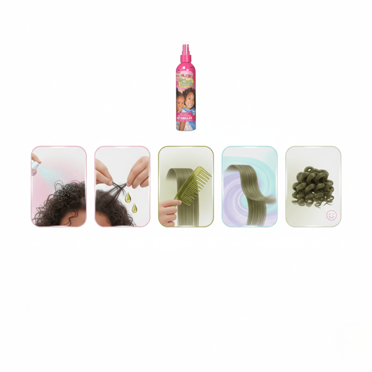 Sanfter Kinder-Detangler mit extra nativem Olivenöl. Spendet sofort Feuchtigkeit, entwirrt Knoten mühelos, reduziert Haarbruch und verleiht weiches, glänzendes Haar. Ideal für Locken & Coils.