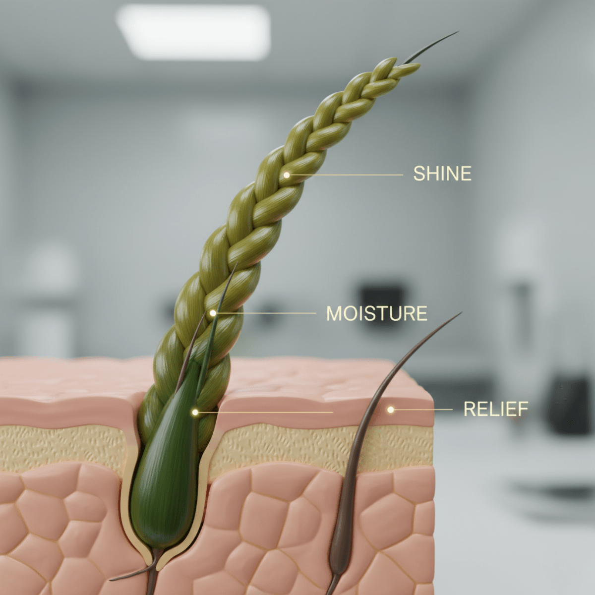 2️⃣ Tägliche Pflege Regelmäßig auf Kopfhaut und Zöpfe auftragen, um Feuchtigkeit & Glanz zu bewahren.