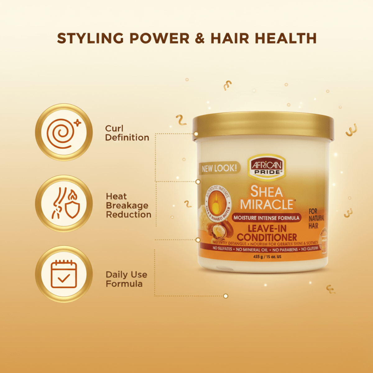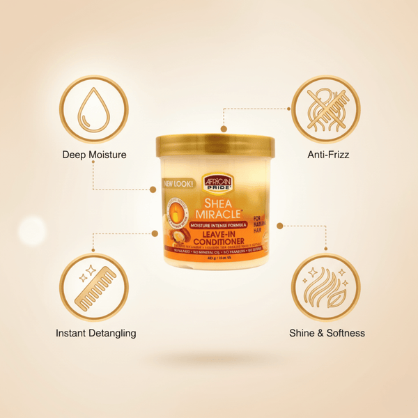Der African Pride Shea Miracle Leave-in Conditioner 425g ist die ideale Lösung für alle, die sich nach sofort geschmeidigem, leichter kämmbaren und gesund aussehendem Haar sehnen. Mit der geballten Kraft hochwertiger Sheabutter dringt diese reichhaltige Formel tief ins Haar ein, spendet intensive Feuchtigkeit und reduziert Frizz schon ab der ersten Anwendung.