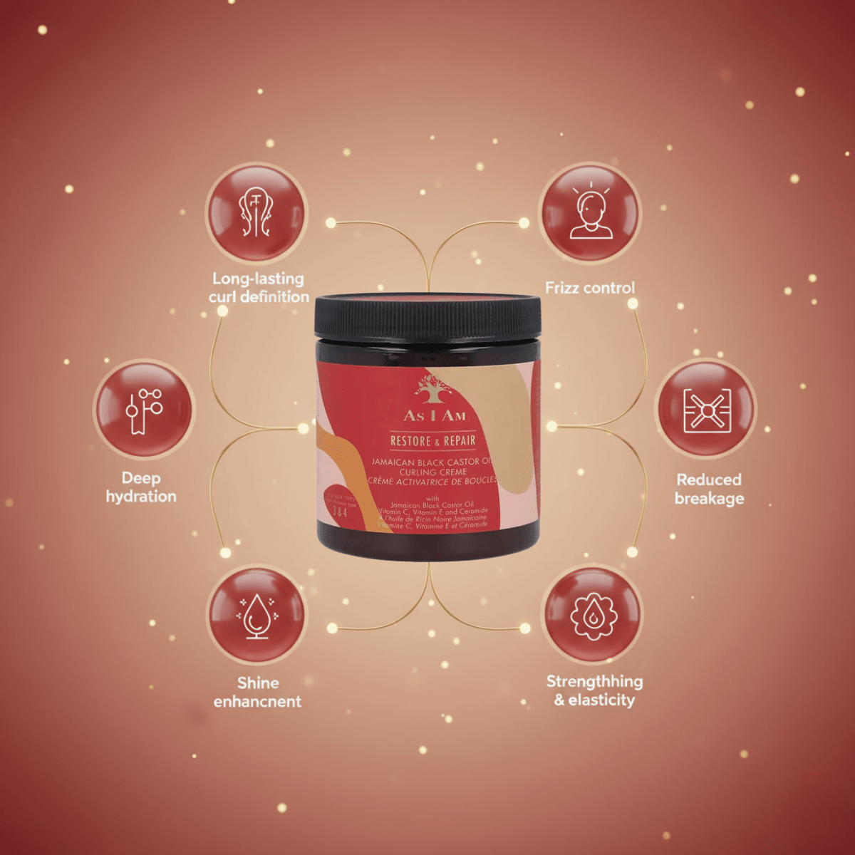 Erwecke Deine Locken mit der kraftvollen, reichhaltigen und hochwirksamen As I Am Jamaican Black Castor Oil Curling Crème zum Leben. Diese luxuriöse Styling-Creme kombiniert jamaikanisches Schwarzes Rizinusöl, Vitamin C, Vitamin E und moderne Sub-Mikron-Technologie, um Deine Locken tief zu nähren, perfekt zu definieren und nachhaltig vor Frizz zu schützen.