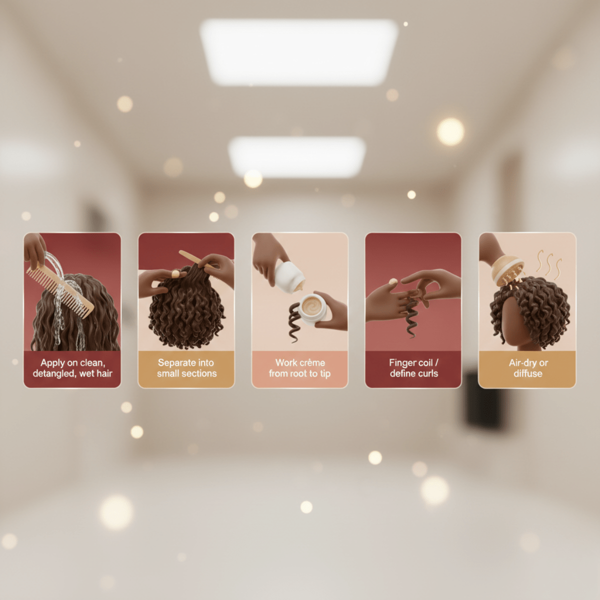 5️⃣ Lufttrocknen lassen oder mit einem Diffusor auf niedriger Stufe trocknen. Danach Locken vorsichtig trennen und stylen.