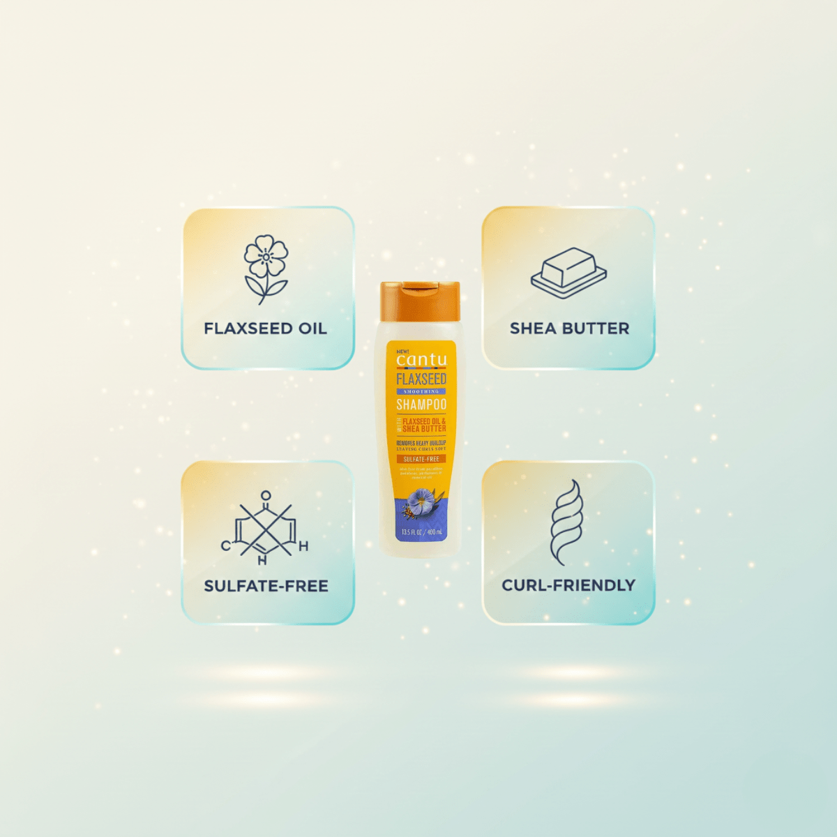 Das Cantu Flaxseed & Shea Butter Smoothing Shampoo wurde entwickelt, um Ihrem Haar neues Leben, mehr Glanz und geschmeidige Struktur zu verleihen. Die Kombination aus Leinsamenextrakt, reiner Shea-Butter und feuchtigkeitsspendenden Pflanzenstoffen reinigt tiefenwirksam, ohne das Haar auszutrocknen – ideal für lockiges, welliges und krauses Haar, das leicht austrocknet oder zu Frizz neigt.