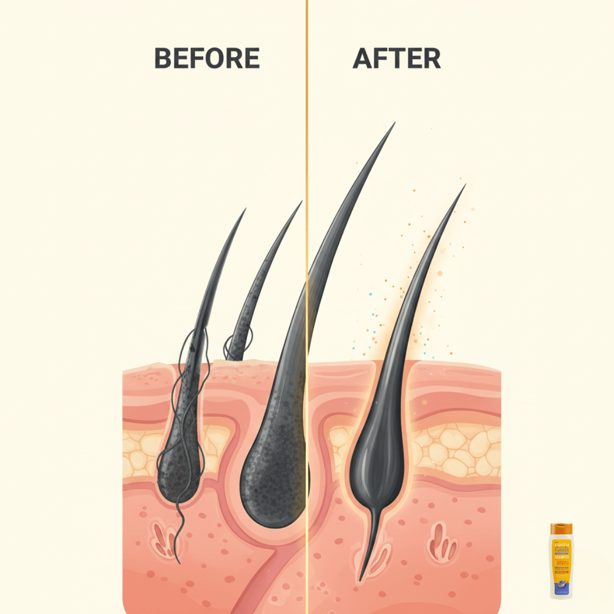 5️⃣ Für optimale Ergebnisse mit Cantu Flaxseed Conditioner fortfahren.