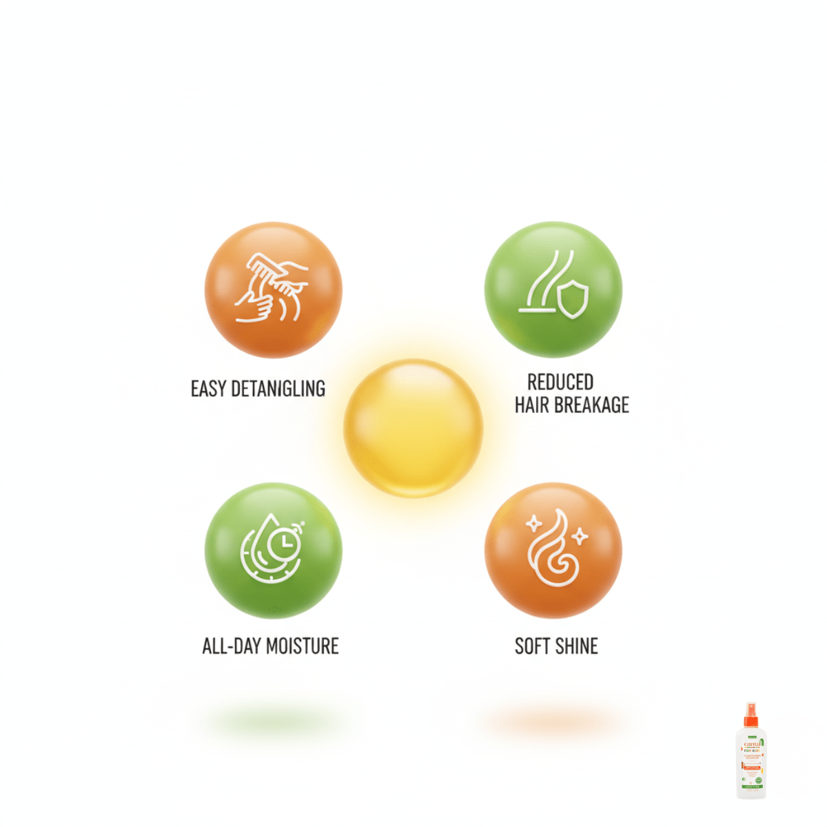 Ob morgens vor der Schule, nach dem Baden oder zum Auffrischen zwischendurch – dieser Leave-in-Detangler bietet sofortige Entwirrung, reduziert Haarbruch und schützt die empfindliche Kinderkopfhaut. Eine sanfte, sichere und natürliche Pflege, auf die Eltern vertrauen können.