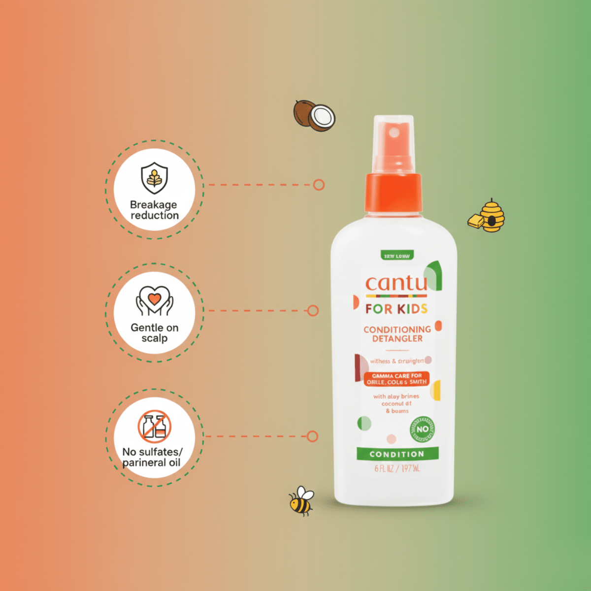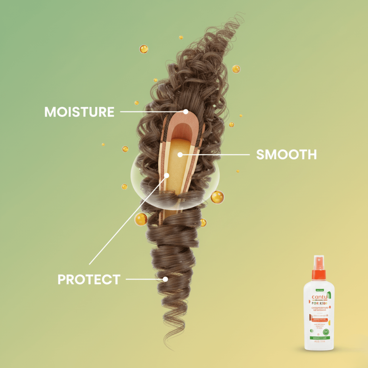 Das Cantu Kids Conditioning Detangler Spray ist die ideale Lösung für Eltern, die Knoten, Ziepen und Haarbruch vermeiden möchten – und gleichzeitig die empfindliche Haarstruktur ihres Kindes schützen wollen. Die leichte, pflegende Formel mit Sheabutter, Kokosnussöl und Honig spendet intensive Feuchtigkeit, macht das Haar geschmeidig und lässt selbst widerspenstige Knoten im Handumdrehen verschwinden.
