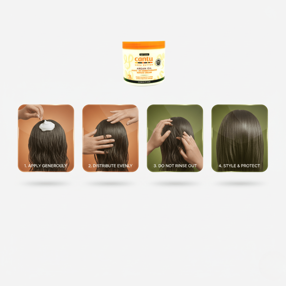 1️⃣ Eine großzügige Menge auf feuchtes Haar auftragen.