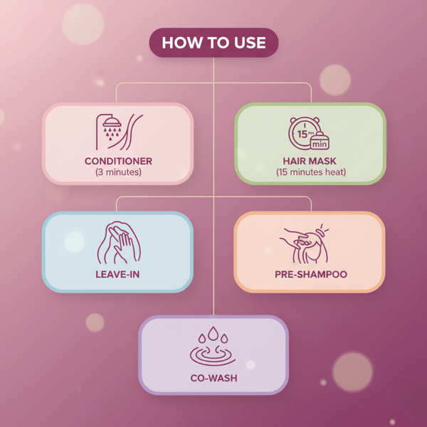 1️⃣ Als Conditioner-Ersatz Nach dem Shampoo auftragen, 3 Minuten einwirken lassen und gründlich ausspülen.