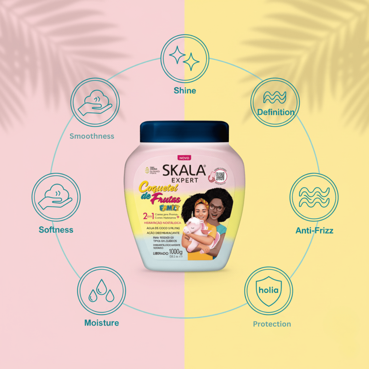 Erwecke dein Haar mit der Energie tropischer Früchte! Die SKALA Expert Coquetel de Frutas Family Hair Cream vereint die kraftvoll pflegenden Eigenschaften von Ananas, Kokoswasser und Brombeere, um deinem Haar intensive Feuchtigkeit, sichtbare Stärke und beeindruckenden Glanz zu verleihen.