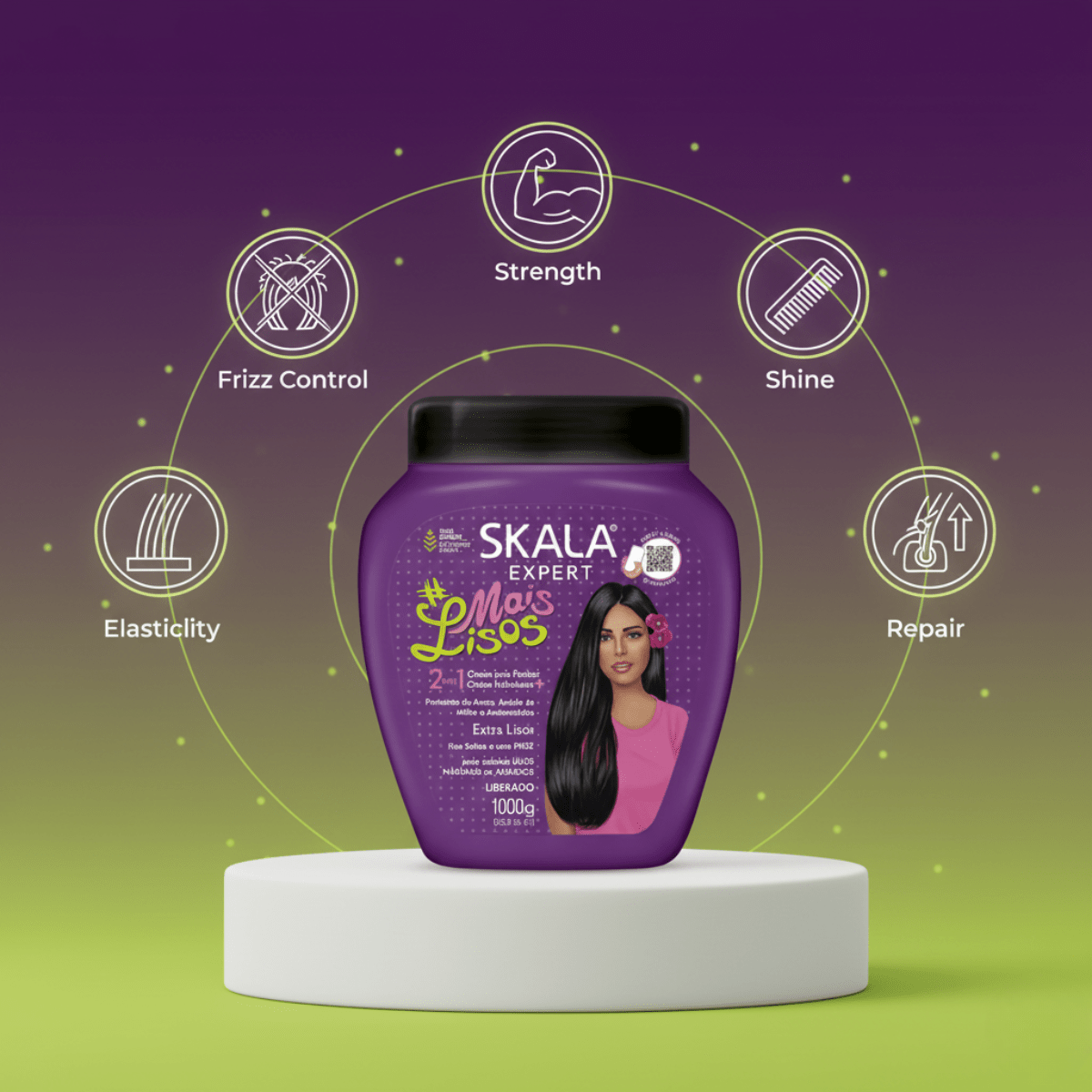 Erlebe die transformierende Glättungspflege für natürlich glattes oder chemisch behandeltes Haar. Die SKALA Expert Mais Lisos 2 in 1 Hair Cream wurde entwickelt, um dein Haar frizzfrei, glatt, kräftig und langanhaltend geschmeidig zu machen.