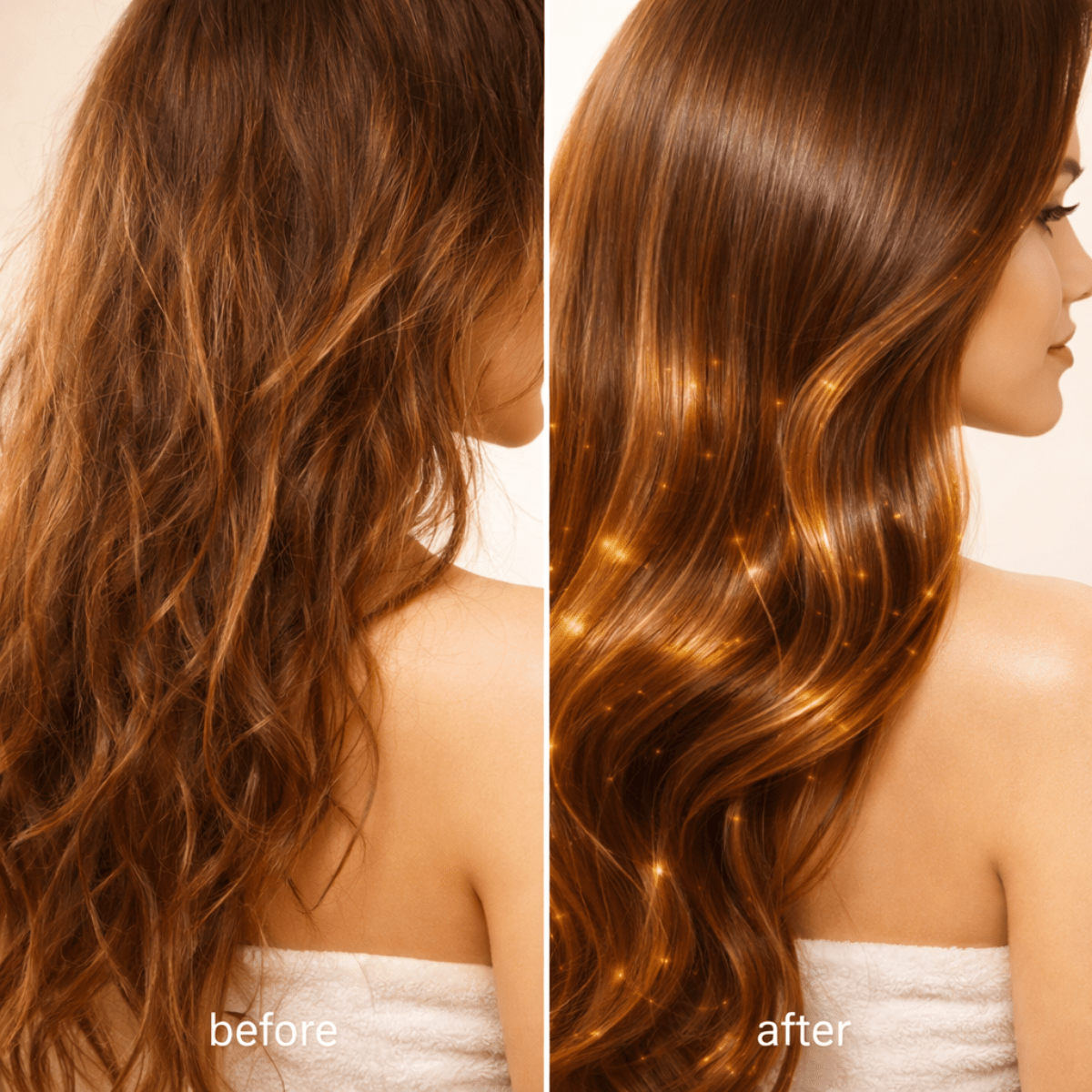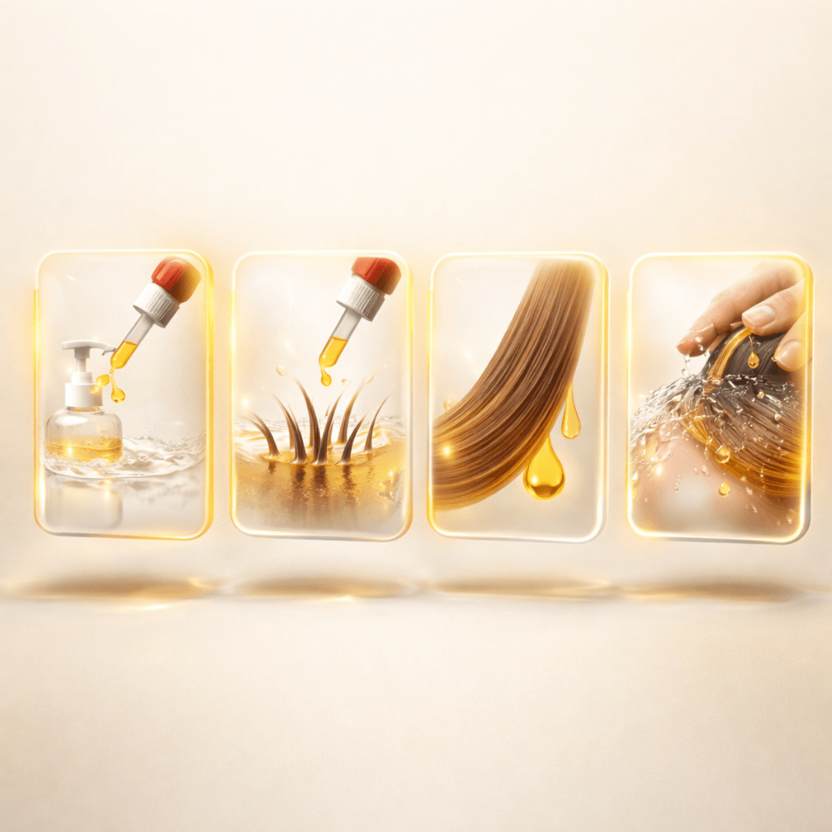 2️⃣ Nach der Haarwäsche 5–20 Tropfen ins handtuchtrockene Haar geben